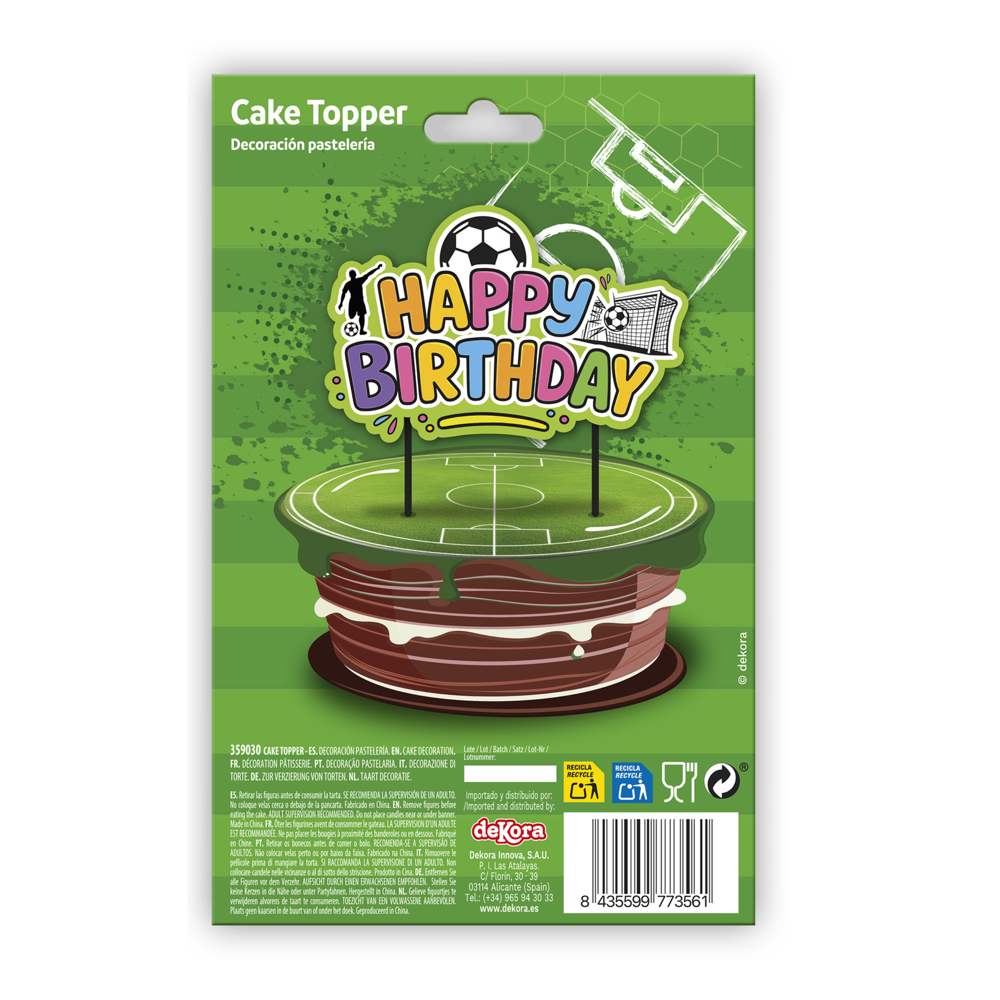 Fácil de colocar, ligero y fabricado con papel resistente, es la manera más rápida de transformar una tarta sencilla en un auténtico homenaje al mundo del fútbol. ¡Ideal para pequeños futbolistas, fans del deporte o cualquier evento temático!