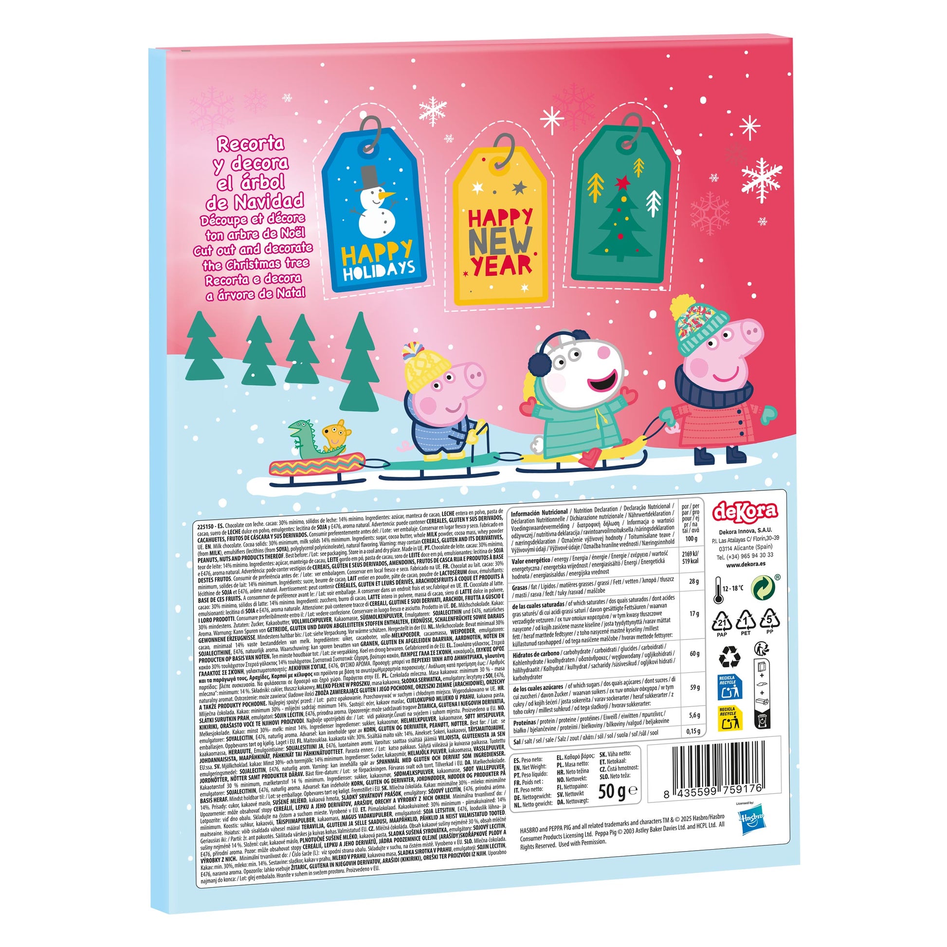 El Calendario de Adviento Peppa Pig Navideño de Dekora es el regalo ideal para los pequeños fans de la cerdita más famosa del mundo. Con un diseño festivo y colorido, cada ventanita esconde una deliciosa sorpresa de chocolate o dulce comestible, perfecta para disfrutar la cuenta atrás hacia Nochebuena.