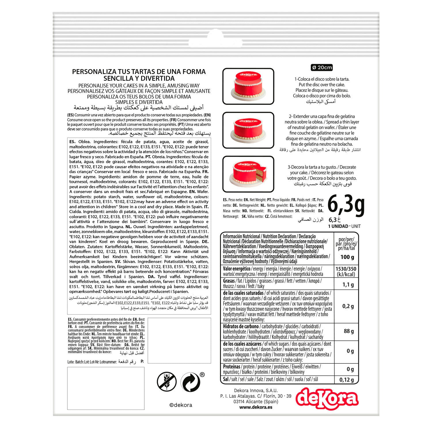 - Producto oficial Dekora, garantizando la máxima seguridad alimentaria.